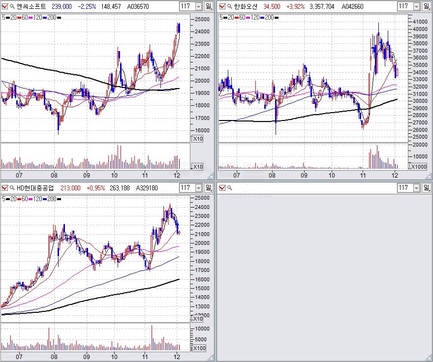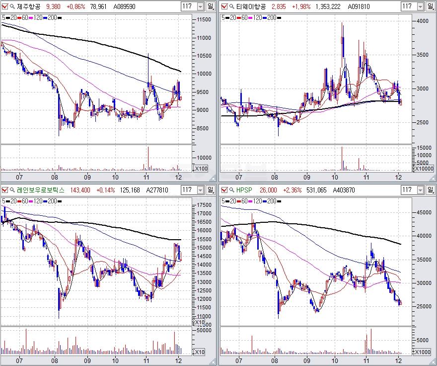 종목들의 주가 흐름은 잠깐 반짝하고는 지지부진한 모습입니다