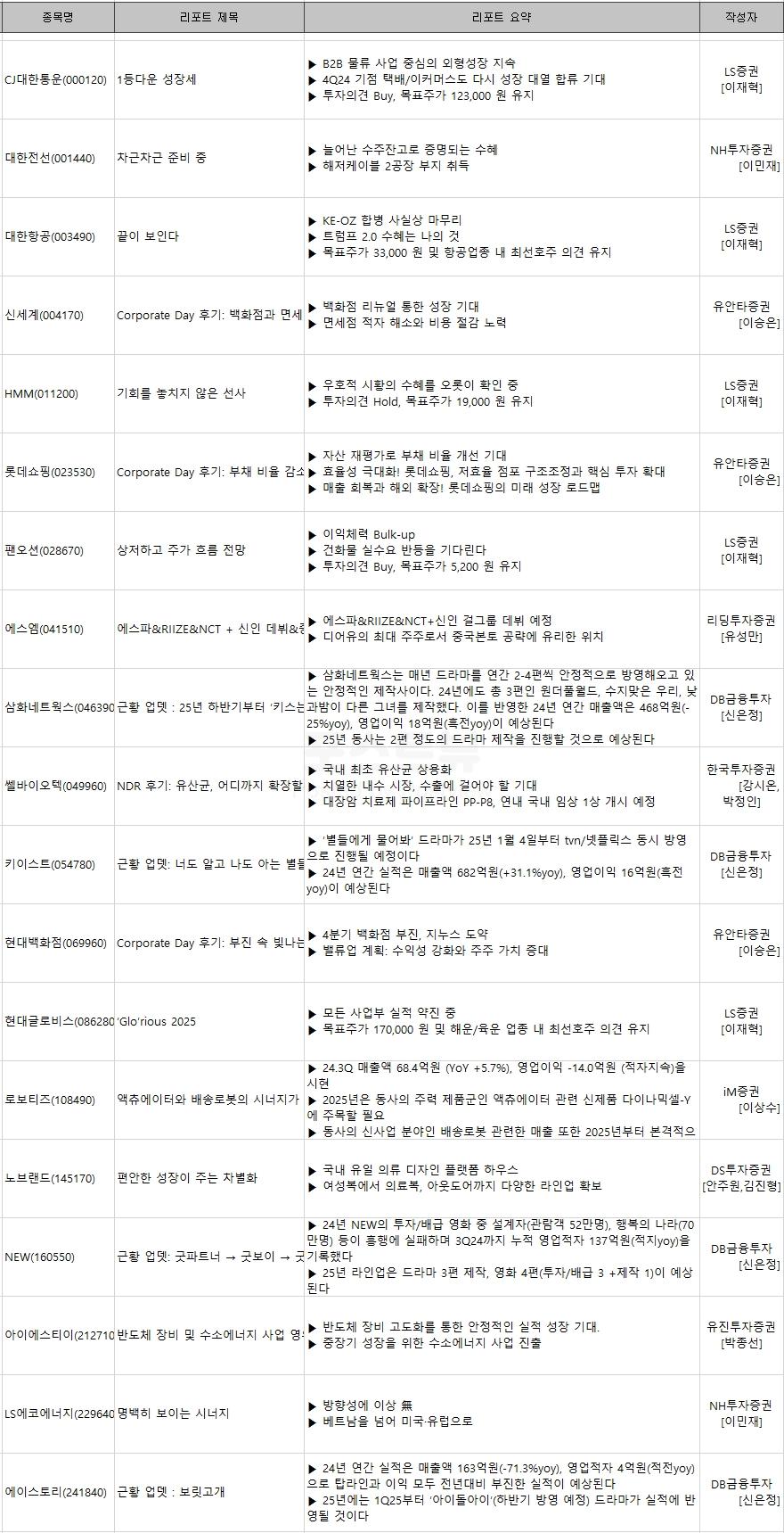 12월 3일 증권사 리포트에서 소개된 목표주가 상향 종목들을 정리했습니다
