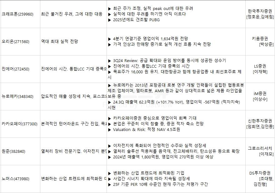 2024년 12월 3일 증권사 리포트에서 나온 종목들 중에서