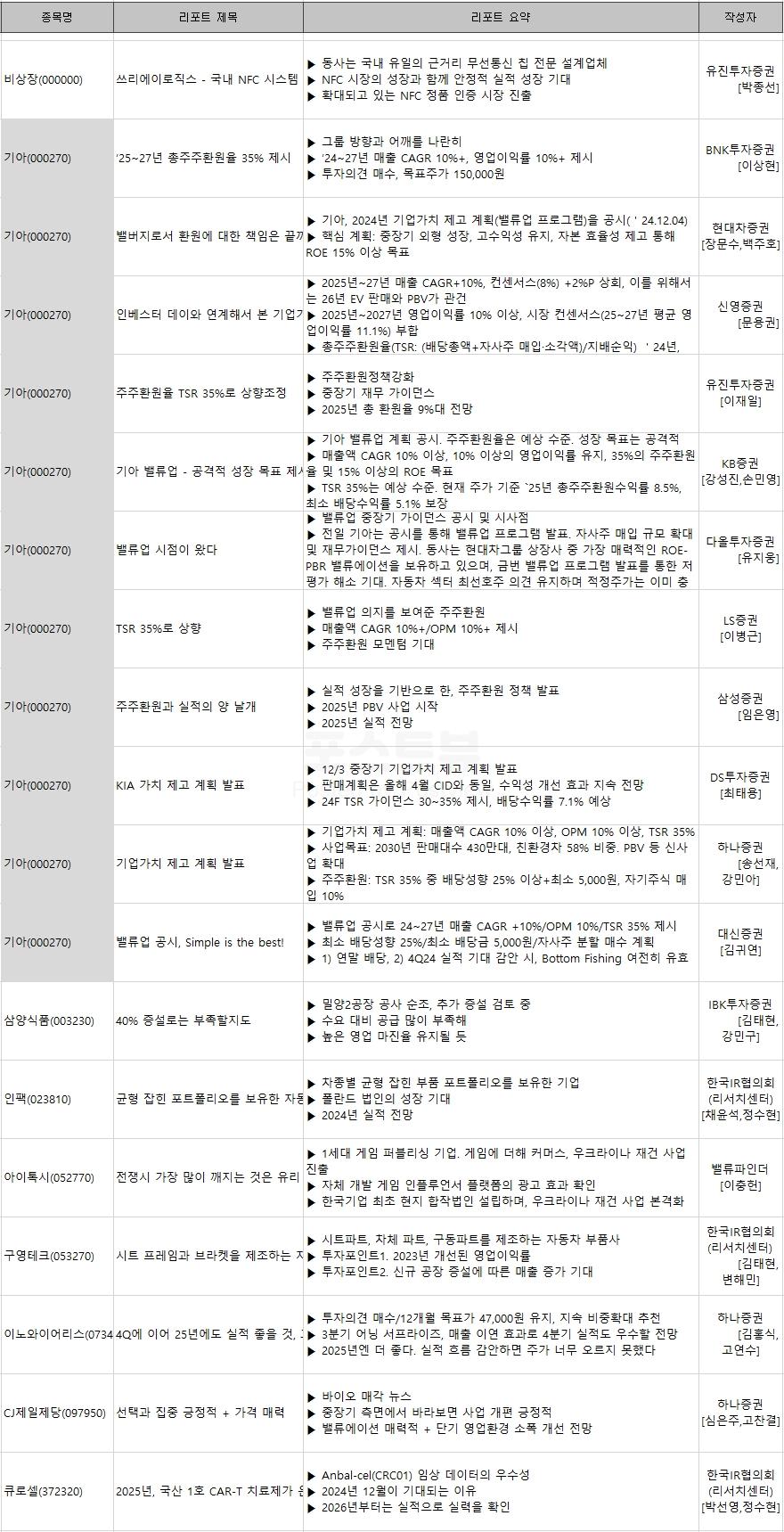그리고 2024년 12월 4일 증권사 리포트에서 나온 종목 중에서