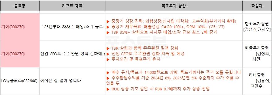 12월 4일 증권사에서 소개된 목표주가 상향 종목들을 정리했습니다