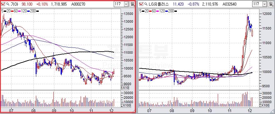 오늘 가장 눈에 띄는 종목은 역시 기아차가 되겠습니다