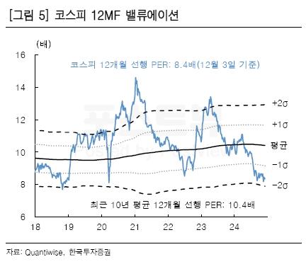 현재 코스피 12MF 밸류에이션은 8배 부근에 물고 있습니다