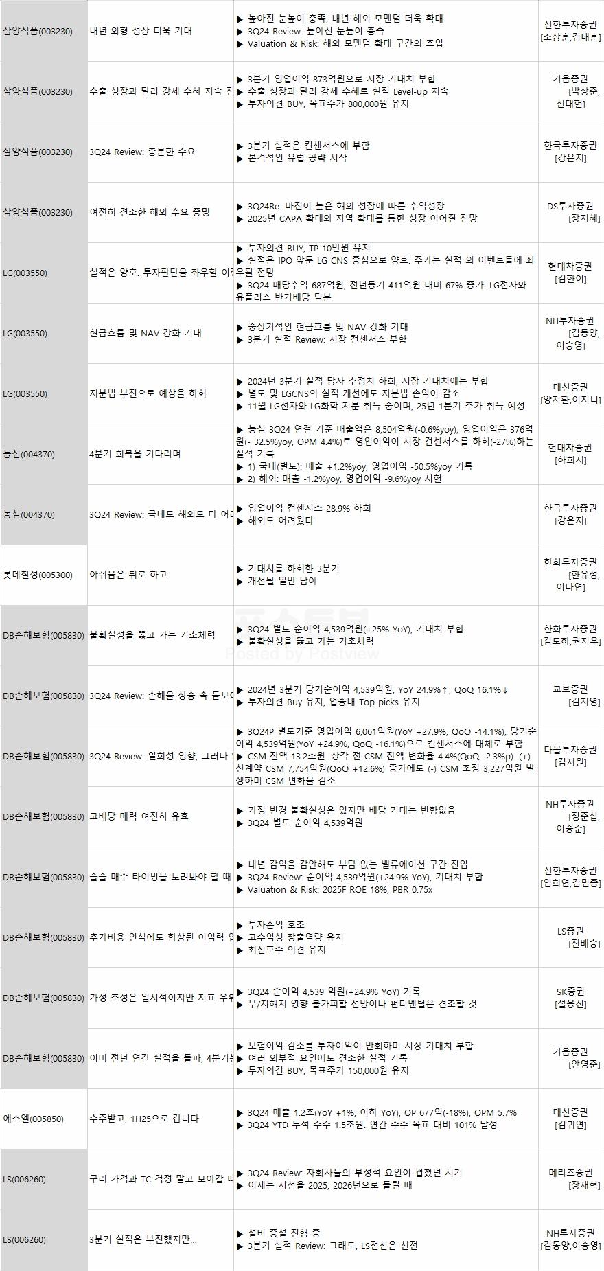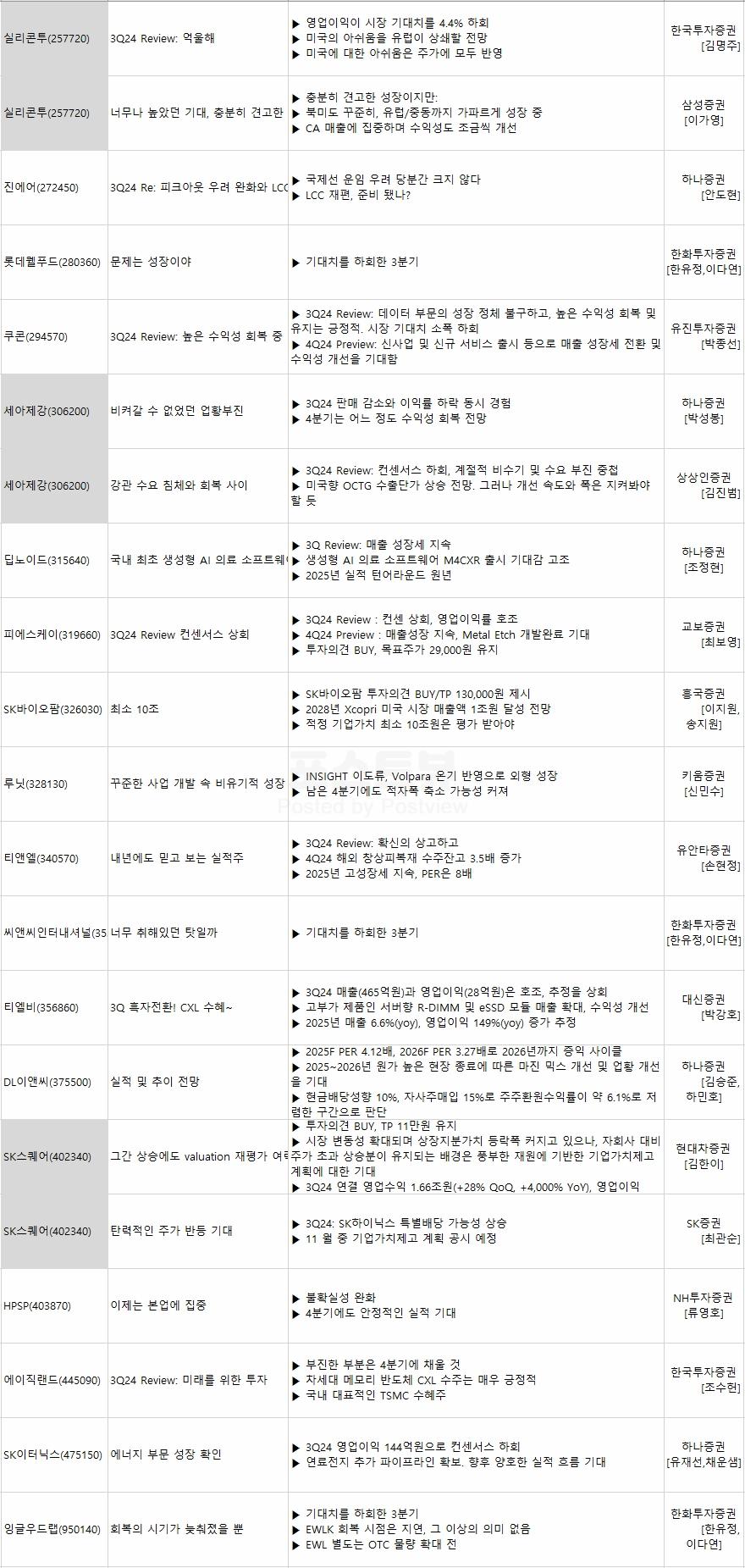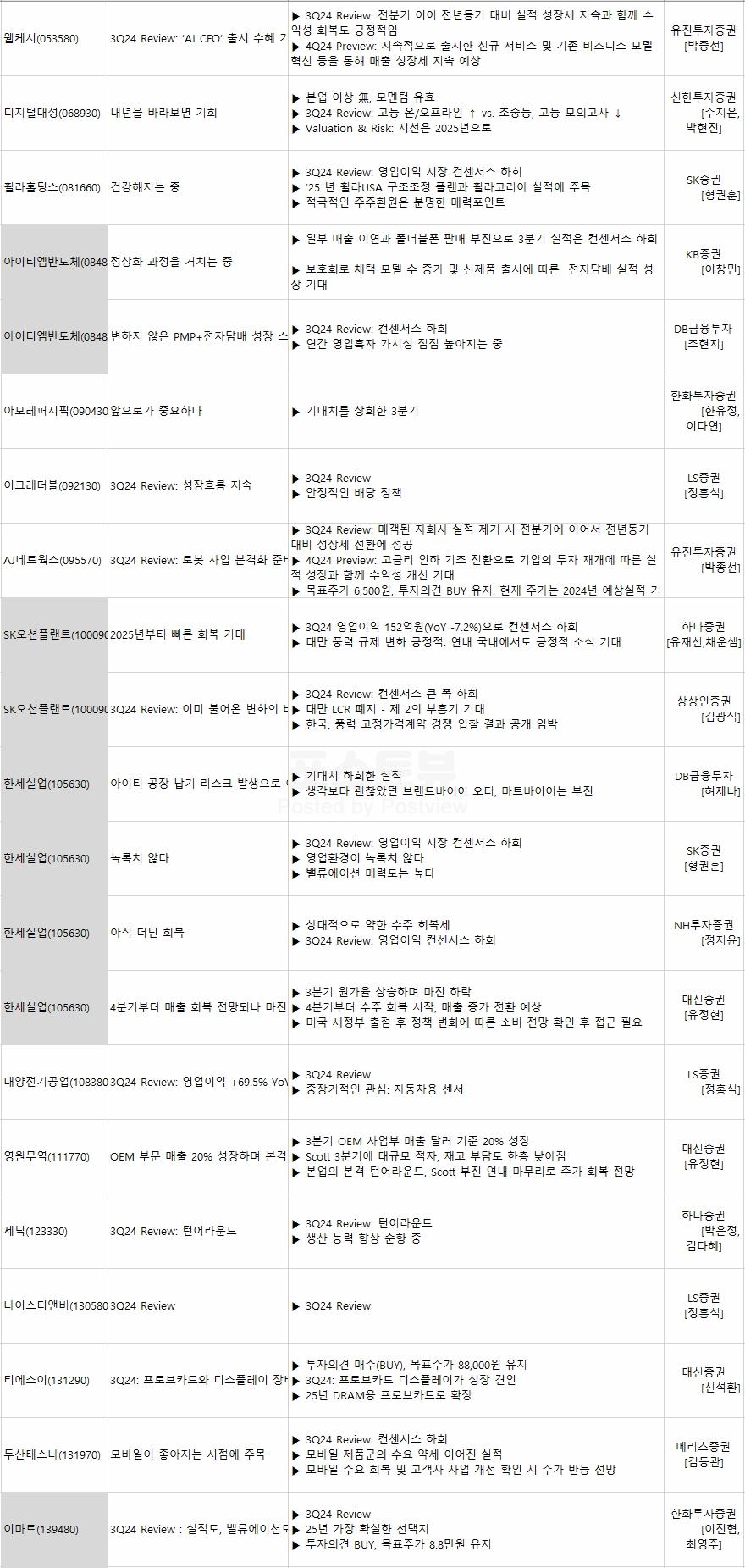 그리고 2024년 11월 15일 증권사 리포트에서 나온 종목들 중에서