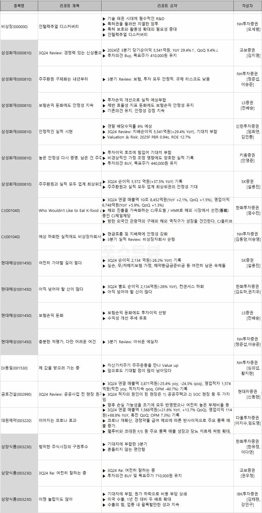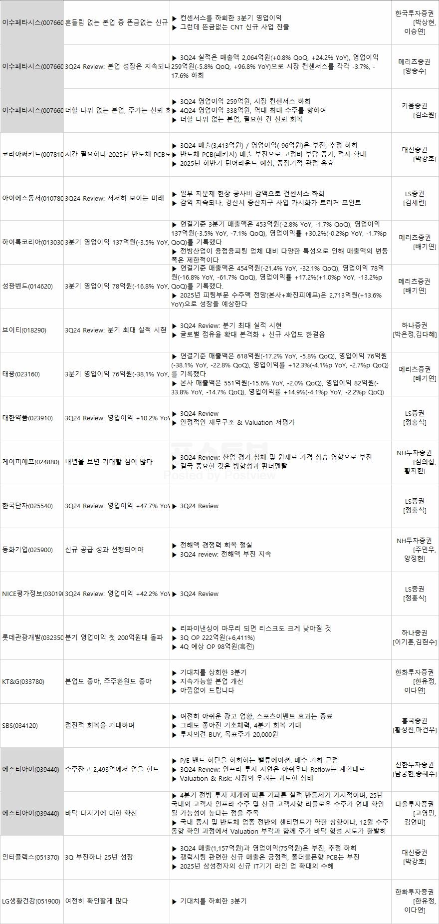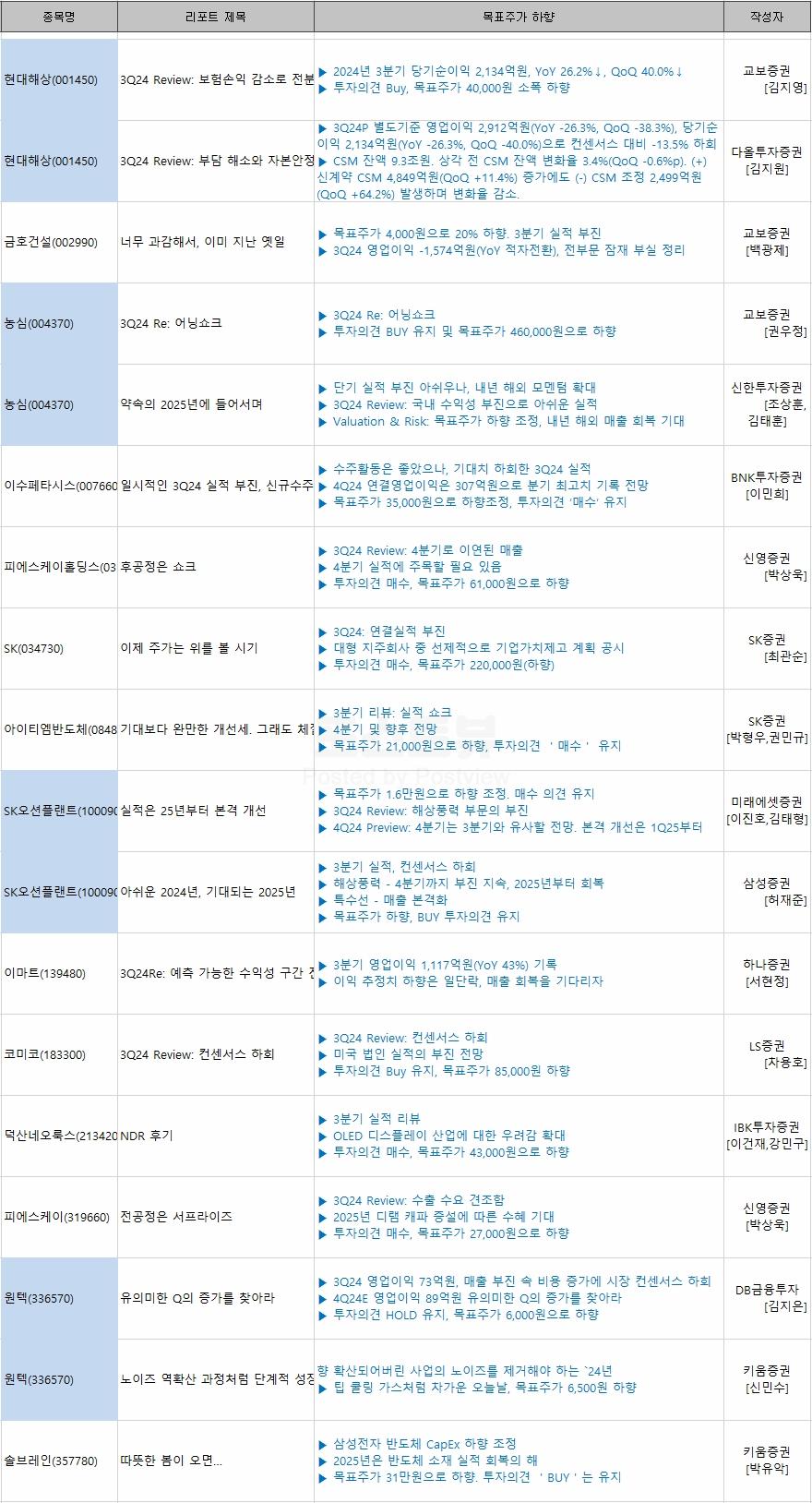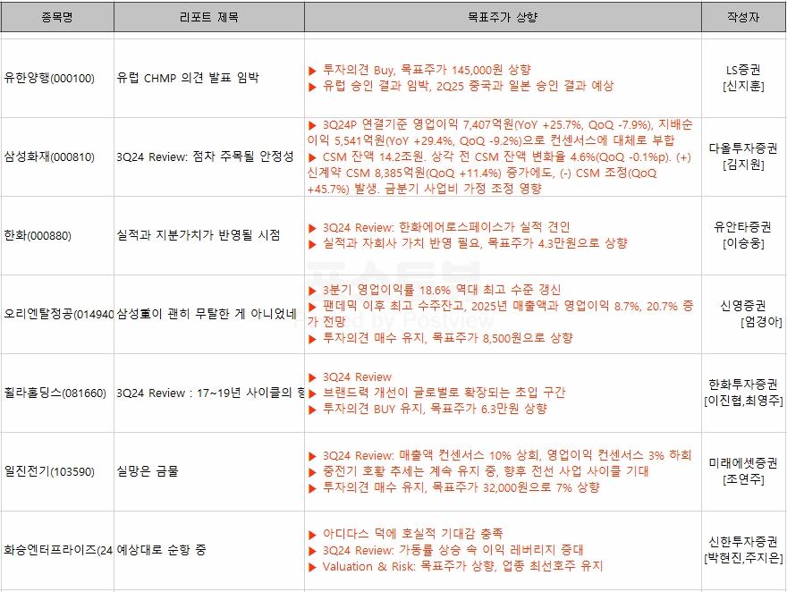 그리고 2024년 11월 15일 증권사 리포트에서 나온 종목들 중에서