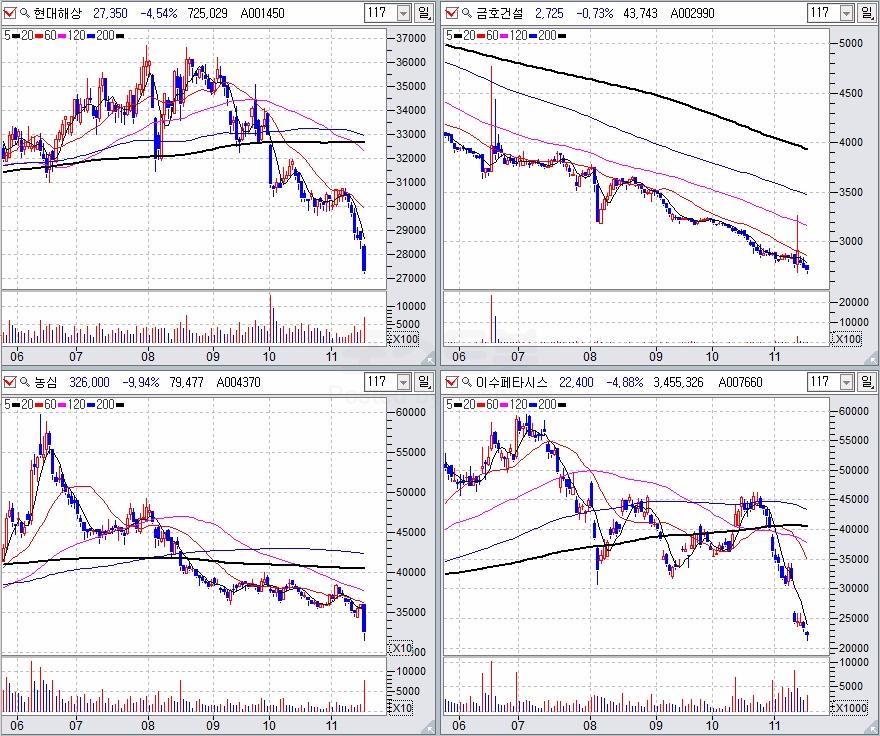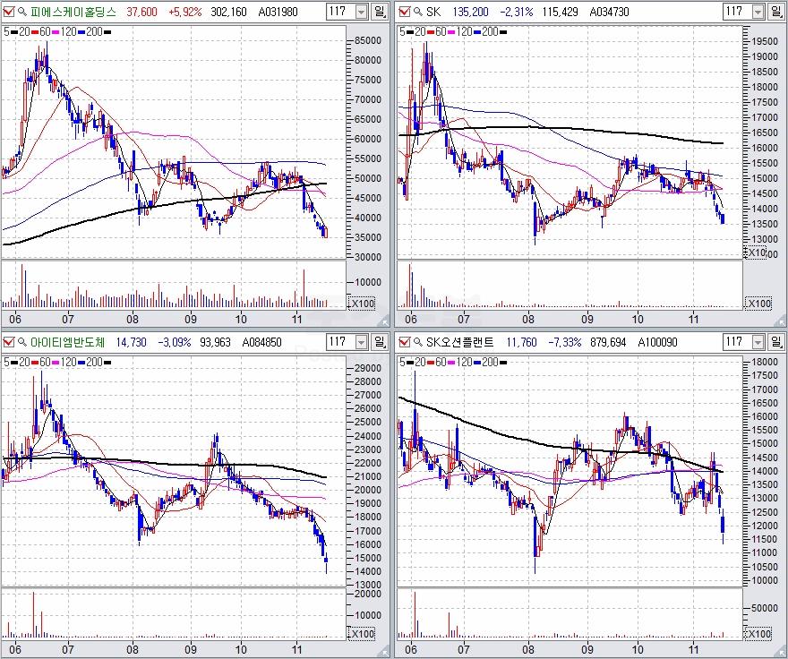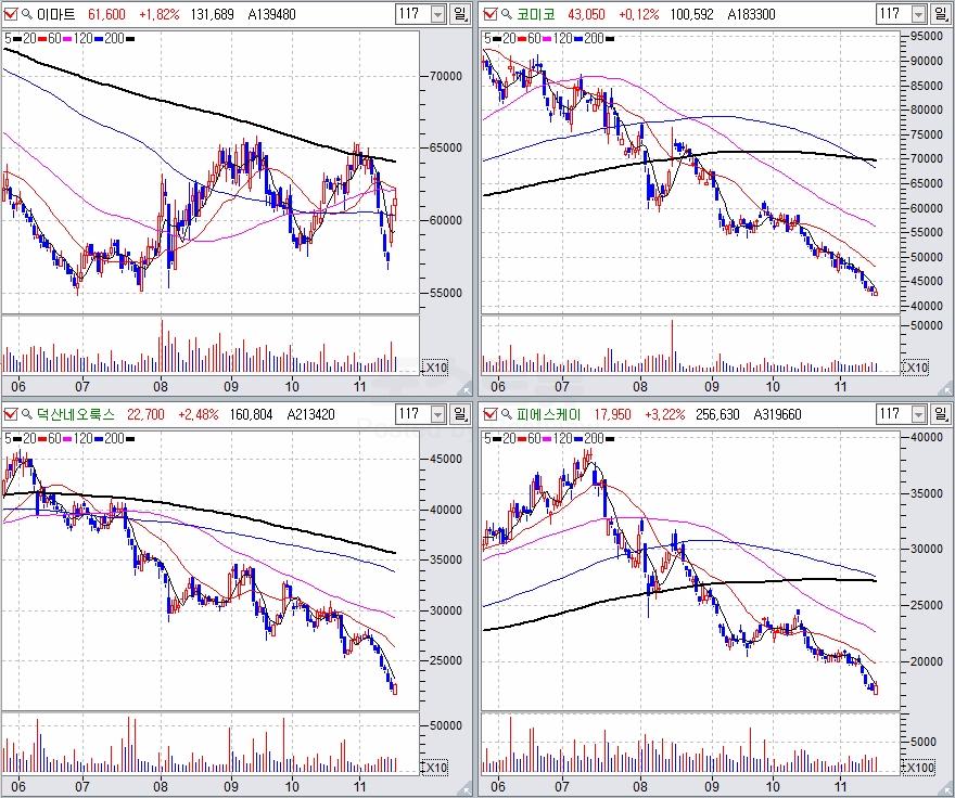 요런 종목들은 잘 메모해 놓았다가 시장이 반등흐름을 보여줄때 관심가지면 좋겠습니다