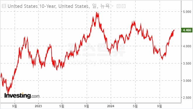 미국채 10년물 금리도 트럼프 트레이드를 반영하면서 급하게 올라가던 분위기에서