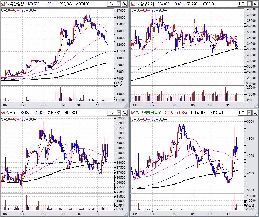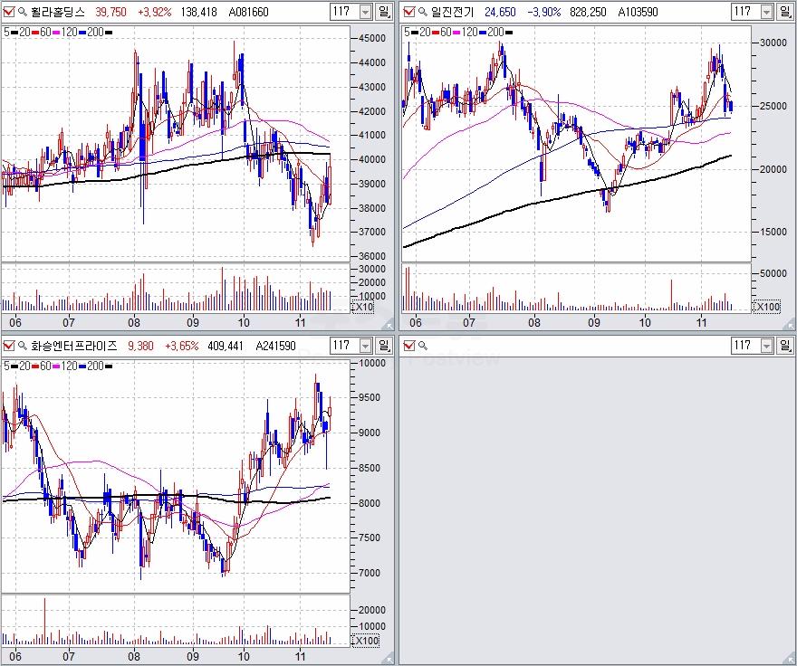 차트상으로 주요한 지지라인에서 실적이나 업황이 개선되는 종목을 찾아보면 좋겠습니다