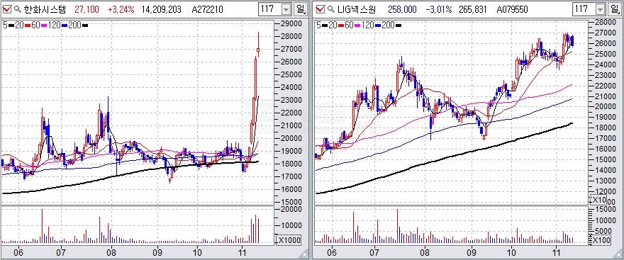 국내에서 지금 주목받는 종목이 한화시스템과 LIG넥스원이 되겠습니다