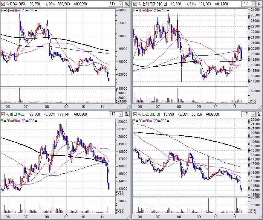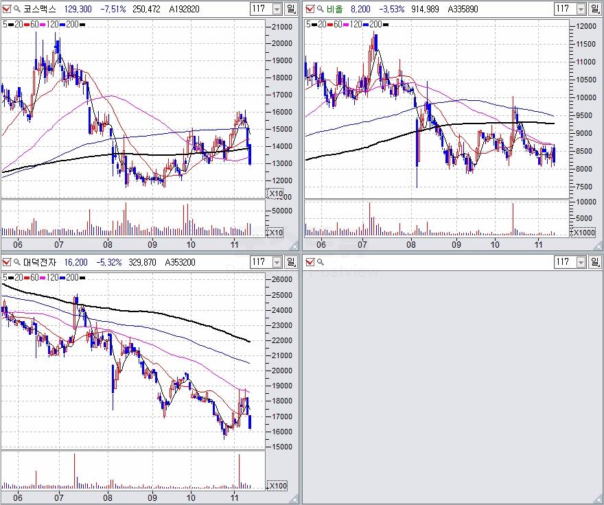 매물부담이 가중되는 와중에 코스피지수도 좋지 않아서 낙폭이 크게 나타나고 있네요