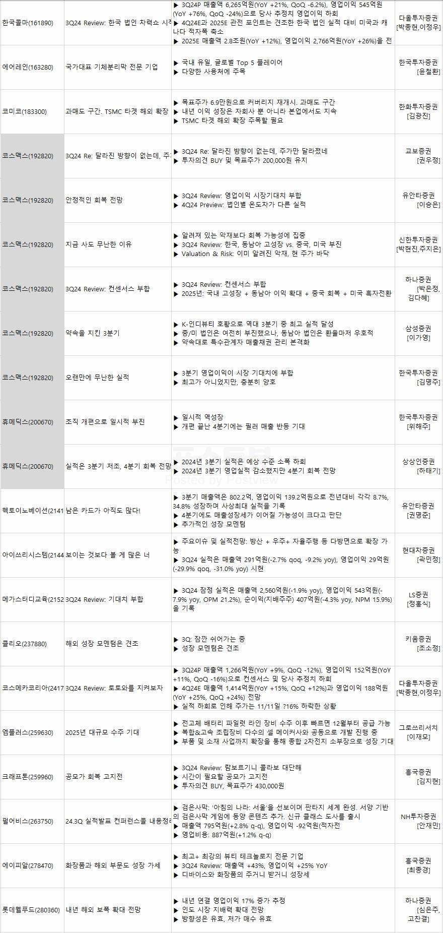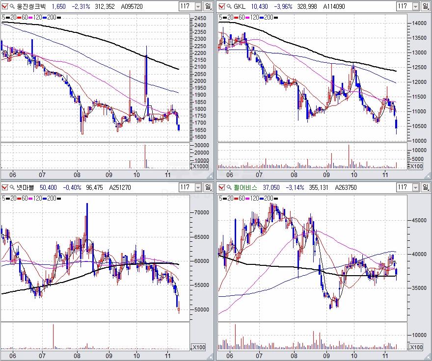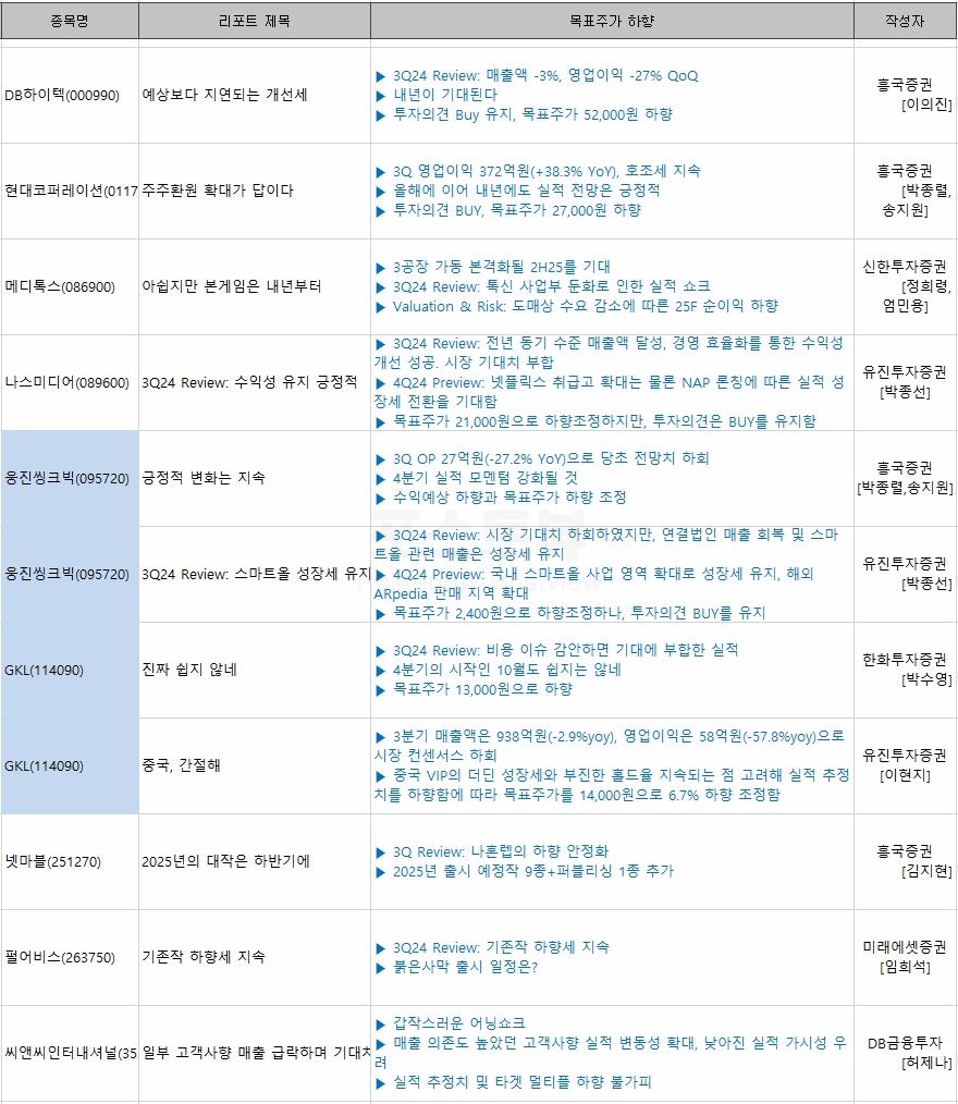 게임관련주와 뷰티 관련한 종목들의 목표가가 하향된 모습입니다