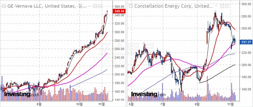 전력망 관련주로 GE버노바와 컨스털레이션 종목들이 주목받고 있습니다