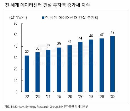 AI투자가 집중되면서 전세계 데이터센터 건설 투자액도 증가세가 지속되고 있습니다