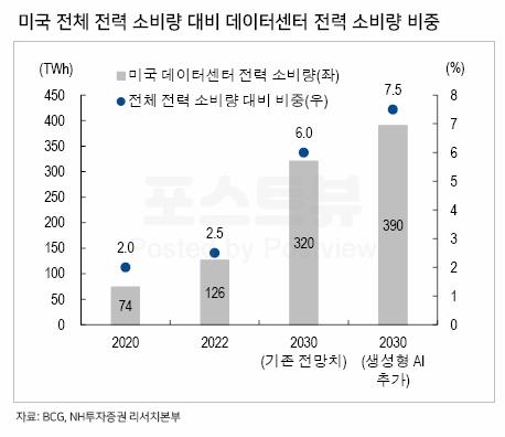 데이터센터가 많이 지어질수록 사용되는 전력소비량도 급격하게 증가하는 흐름입니다