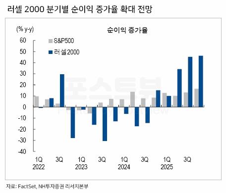 트럼프 2.0 시대에는 러셀2000 분기별 순이익 증가율이 확대될 전망입니다