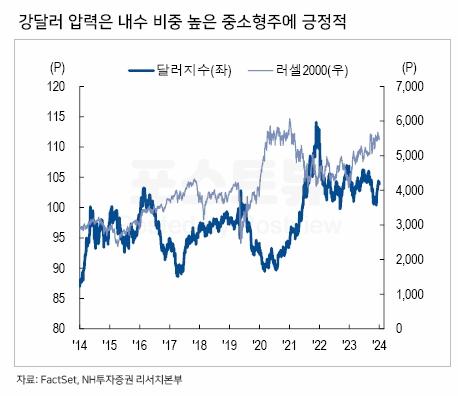 이런 강달러 흐름에서는 내수비중이 높은 중소형주에 긍정적인 상황이 펼쳐집니다