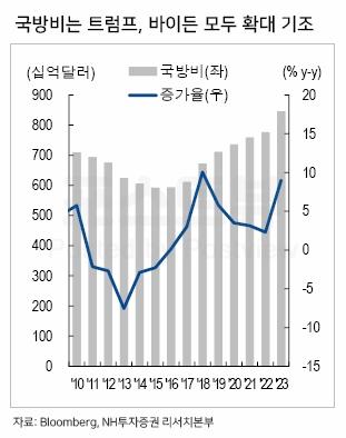 공화당 트럼프, 민주당 바이든 모두 국방비는 확대기조를 유지하였습니다