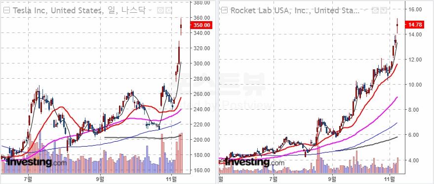 테슬라 주가도 트럼프 수혜주로 분류되면서 급등하는 흐름을 보여주고 있는데요,