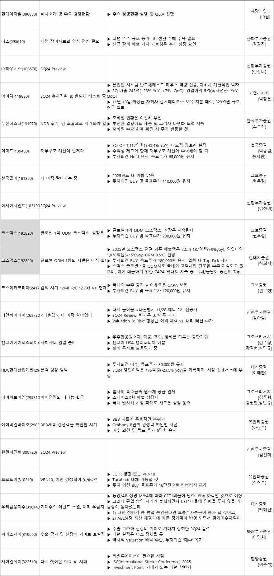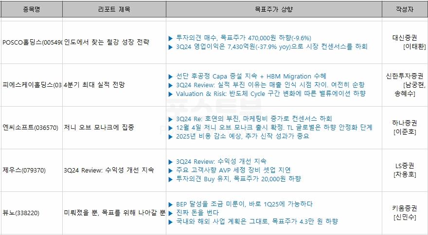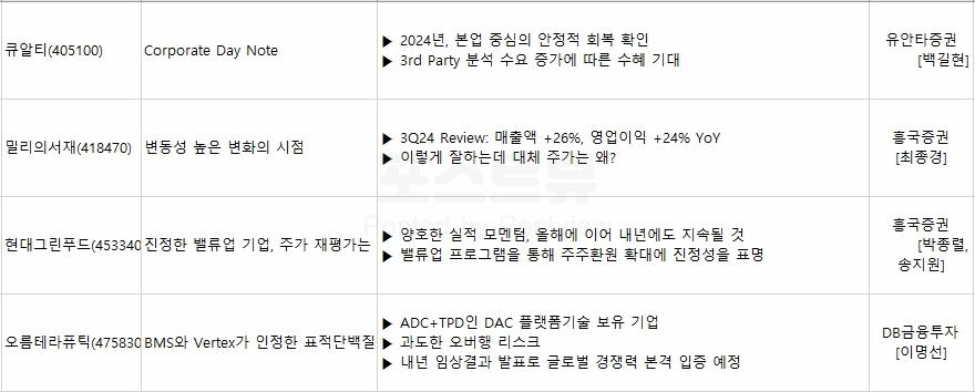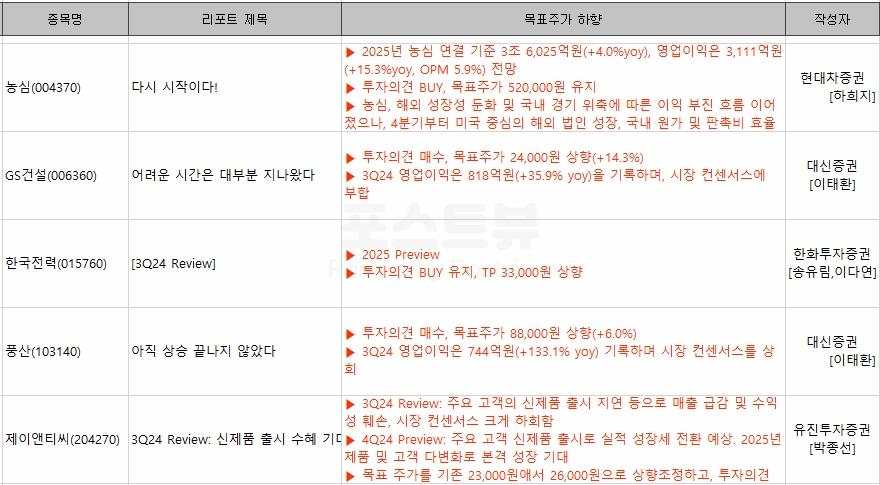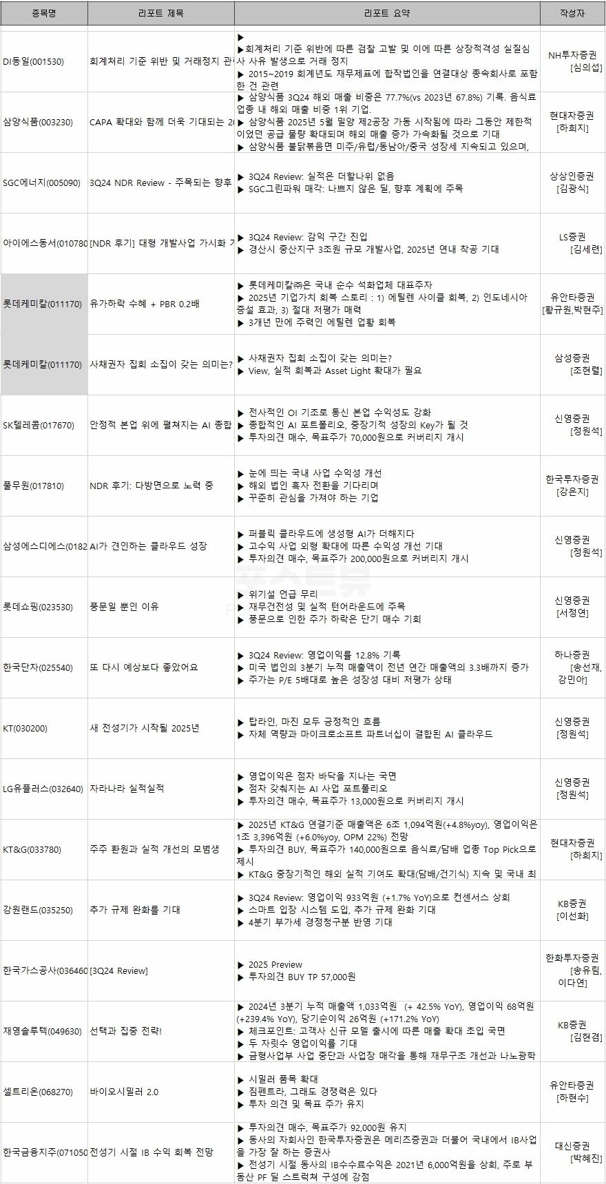 그리고 2024년 11월 21일 증권사 리포트에서 나온 종목들 중에서