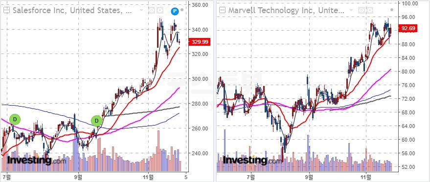 4일 수요일에는 세일즈포스와 마벨 테크놀로지 실적발표가 예정되어 있습니다