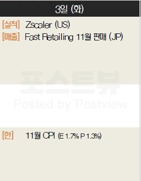 12월 3일 화요일 증시일정은 한국 11월 CPI 수치가 발표됩니다