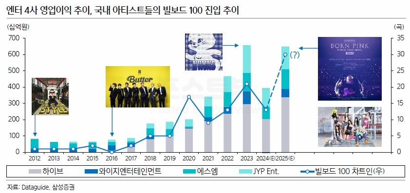 엔터업종이 그중에 하나인데요, 요즘은 국내 아티스트들의 빌보드 100 진입이 익숙해지는 느낌이죠