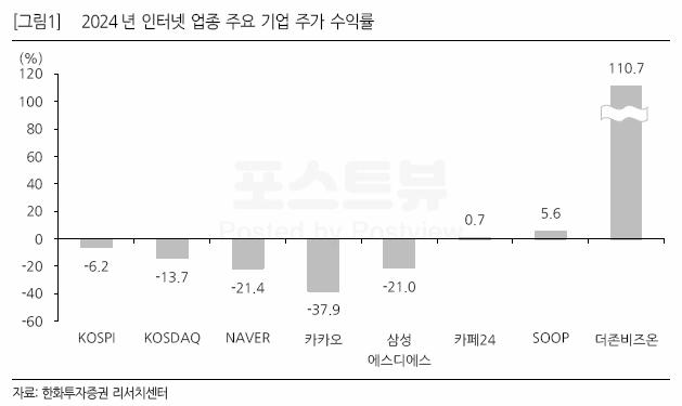 2024년 인터넷 업종의 주요 기업 주가 수익률을 보면 처참한 상황입니다