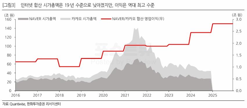 그것도 아닌것이 네이버 주가는 하락했지만 이익은 역대 최고 수준을 보여주고 있습니다