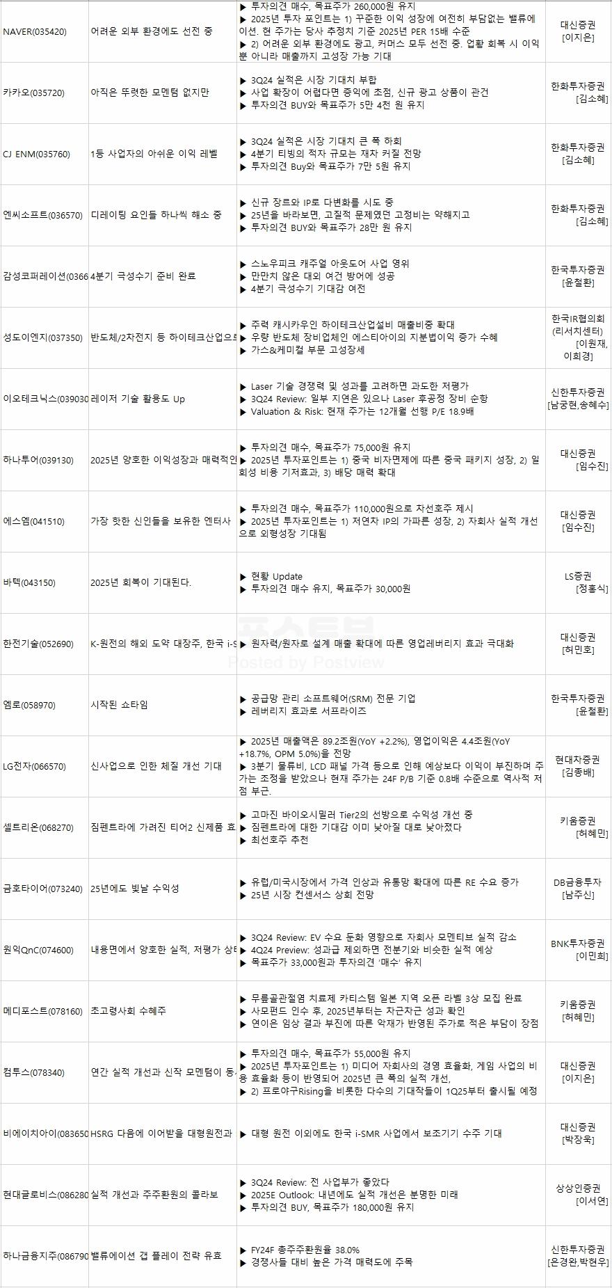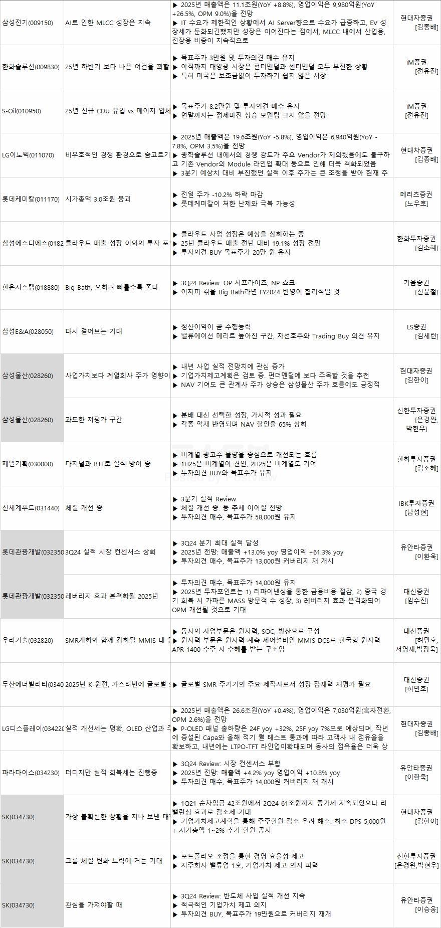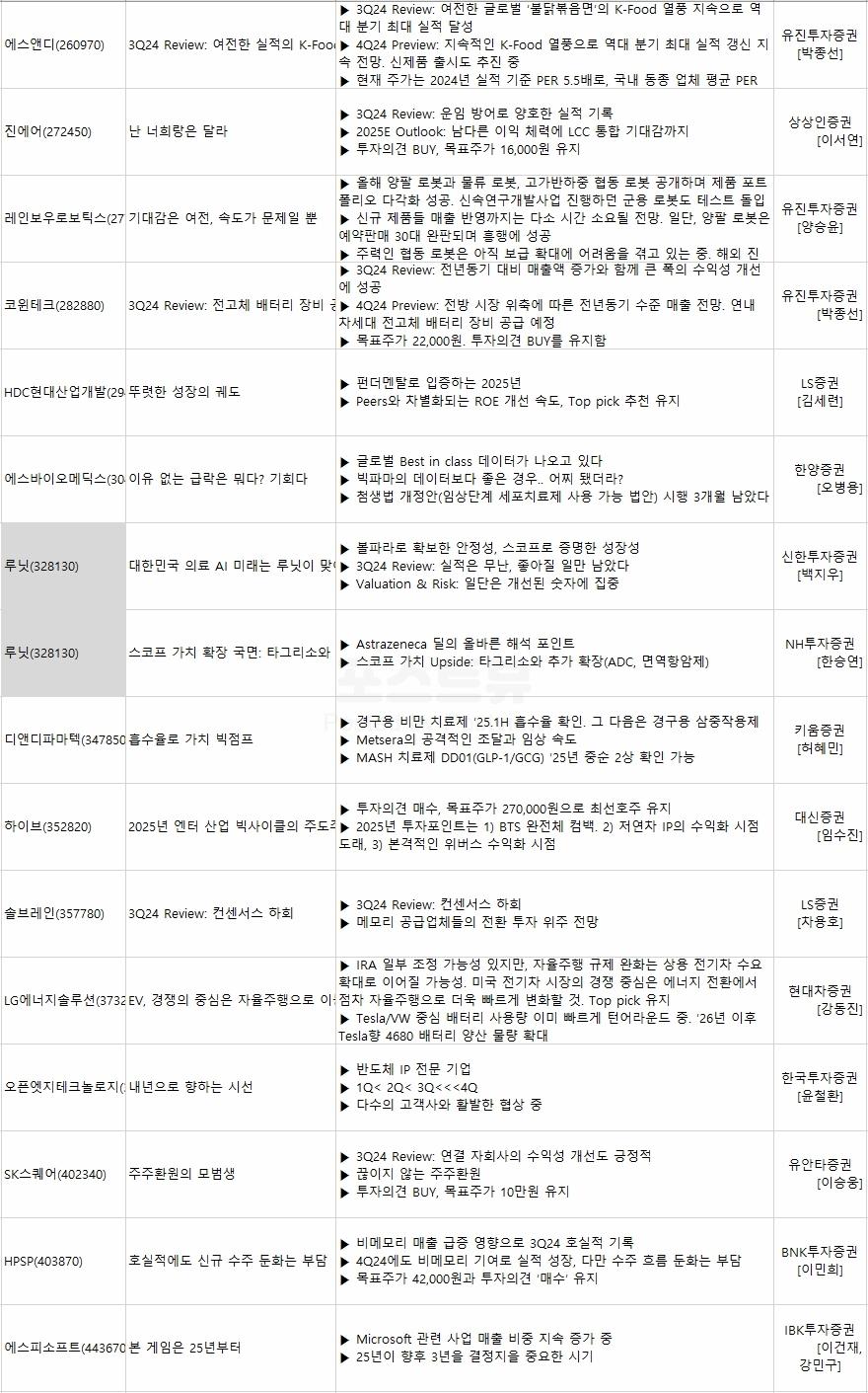 그리고 2024년 11월 19일 증권사 리포트에서 나온 종목들 중에서