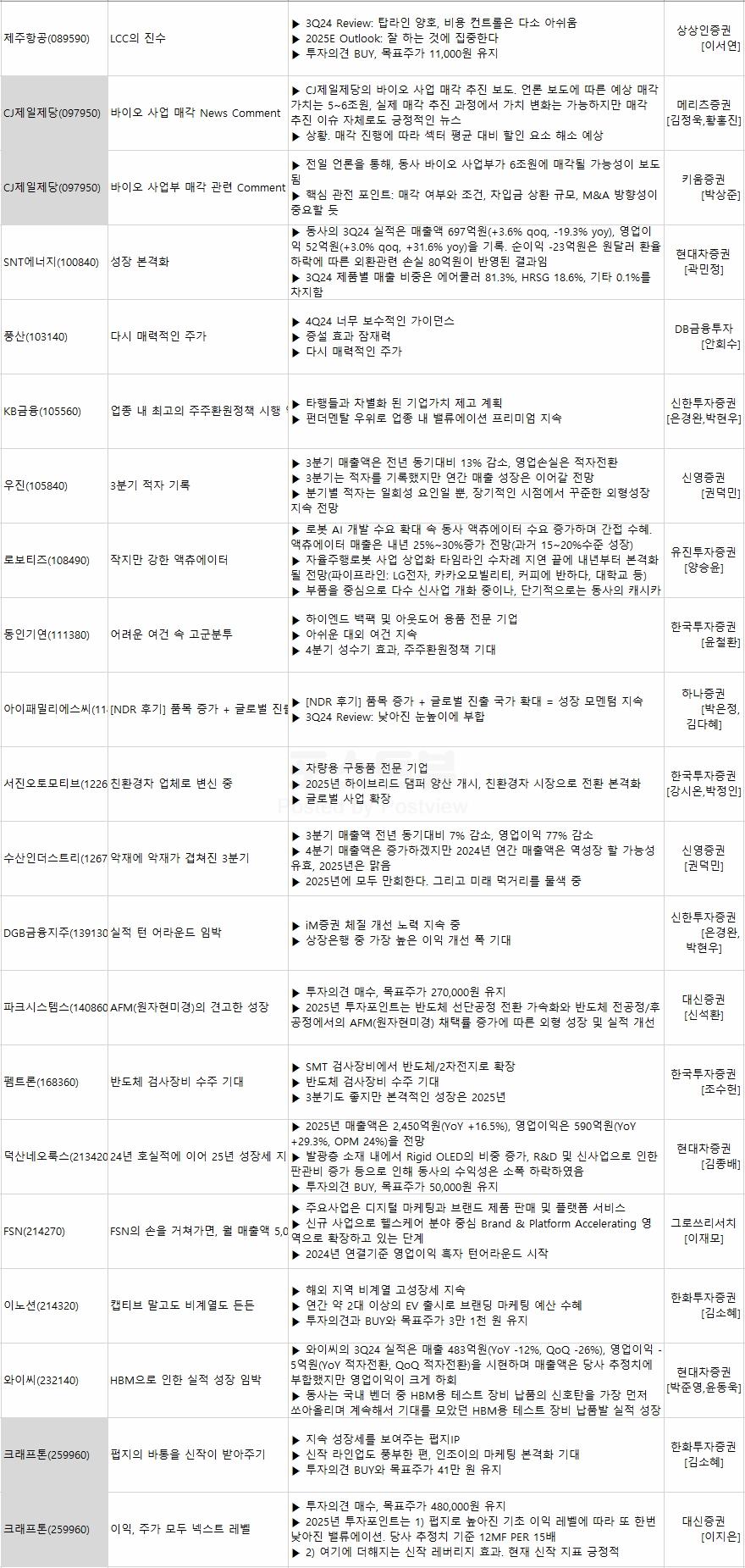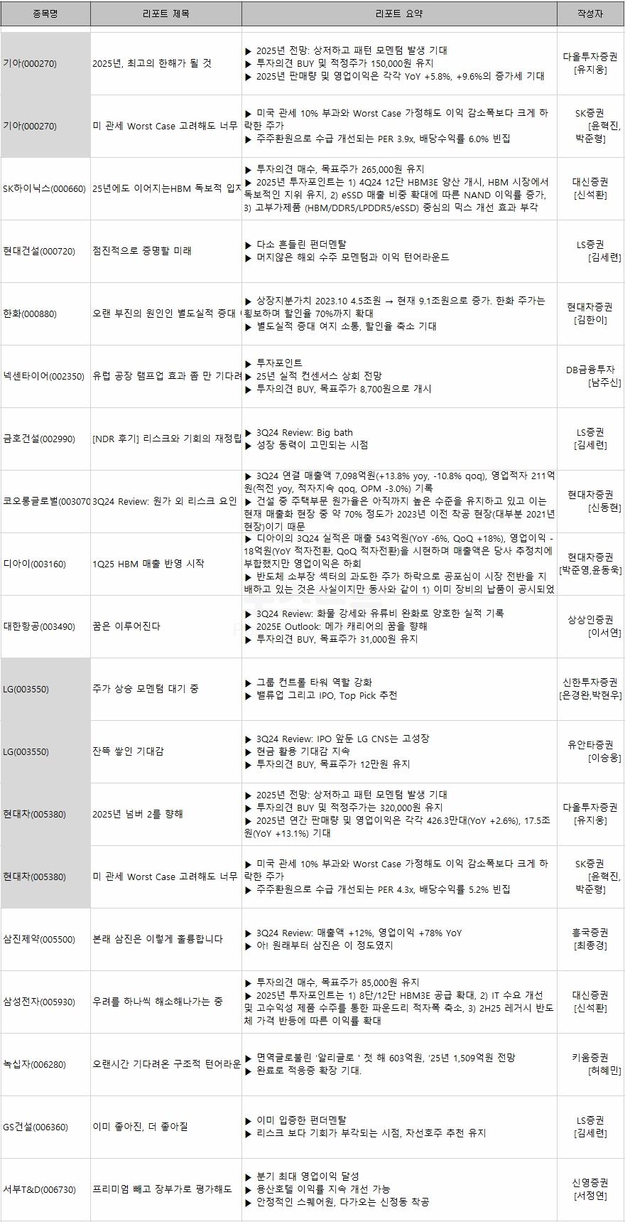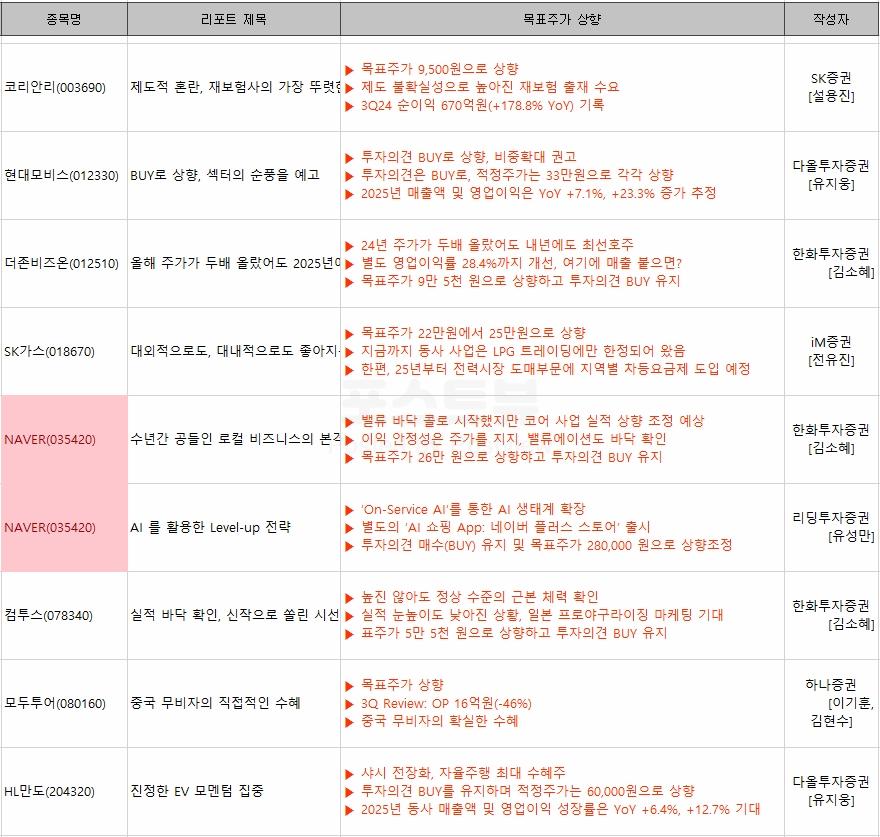 그리고 2024년 11월 19일 증권사 리포트에서 나온 종목들 중에서