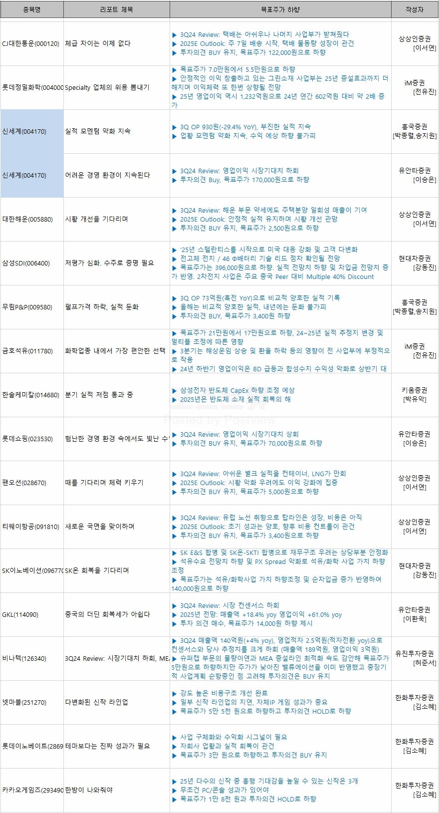 11월 19일 증권사별 목표주가 하향된 종목들도 정리해서 올려드립니다