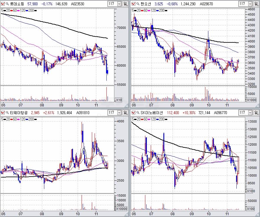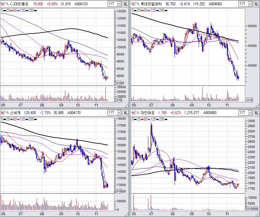 코스피, 코스닥의 하락률 보다도 큰폭이라서 상당히 하락하였네요,.