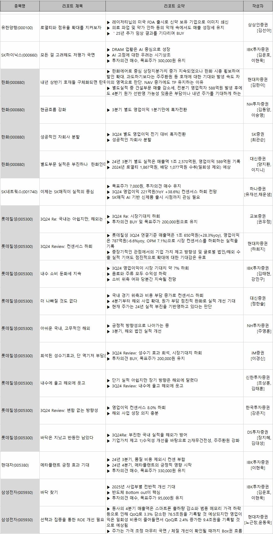 국내 증권사들은 오늘도 많은 기업들의 종목 리포트를 선보였습니다