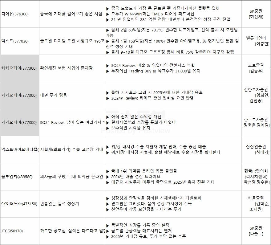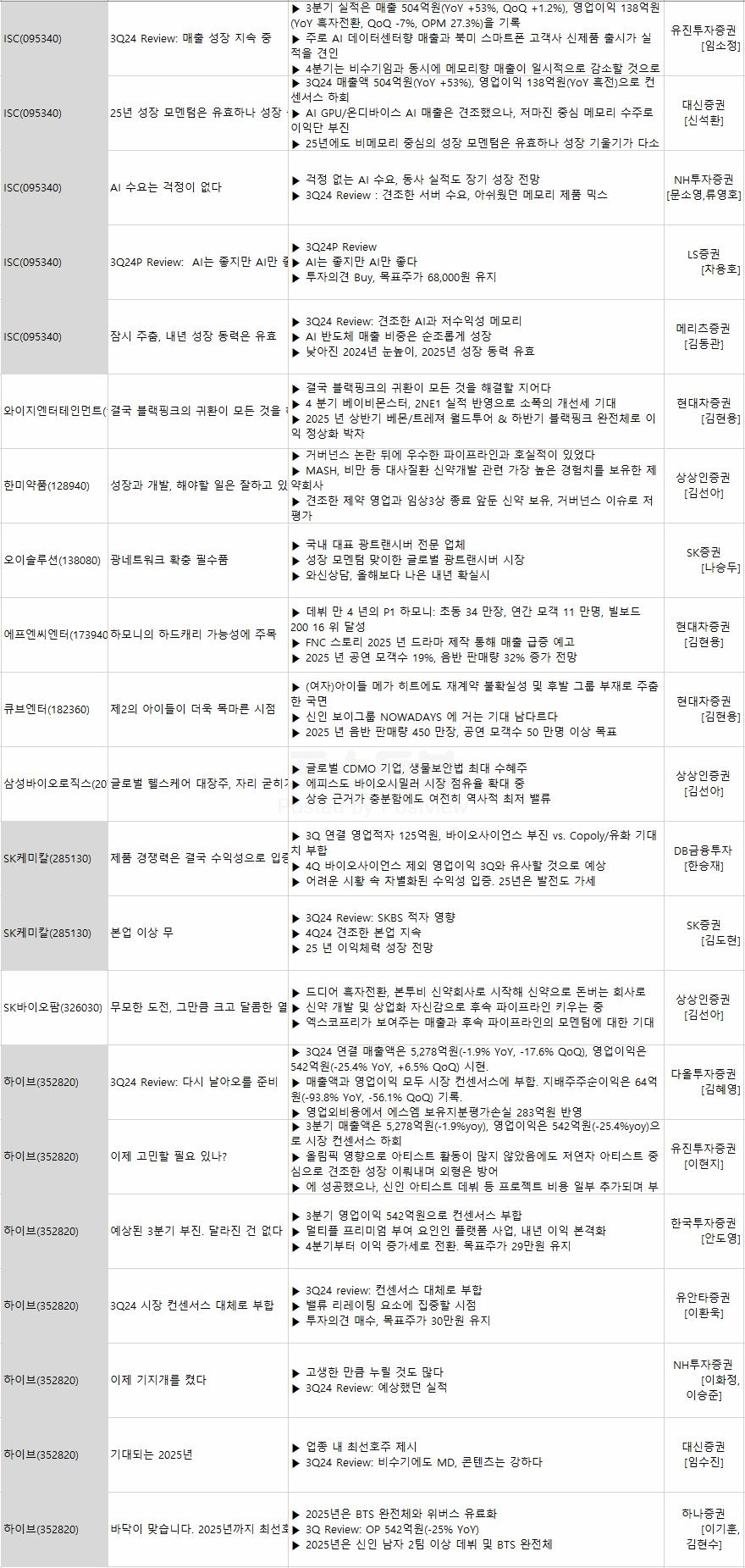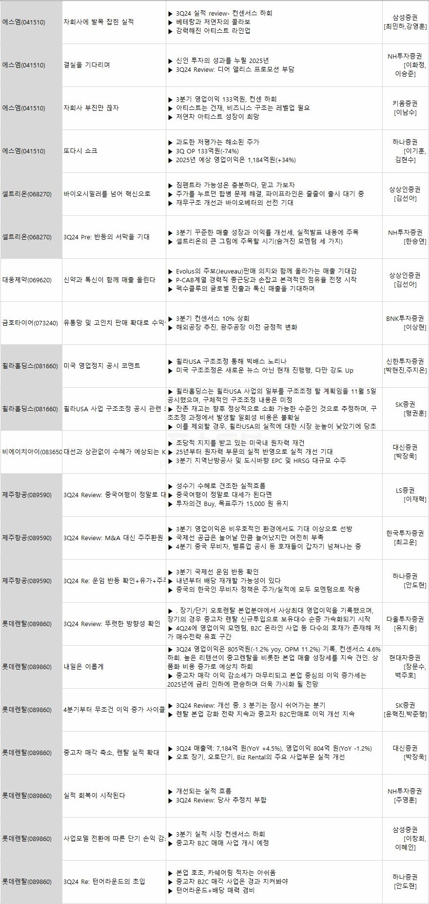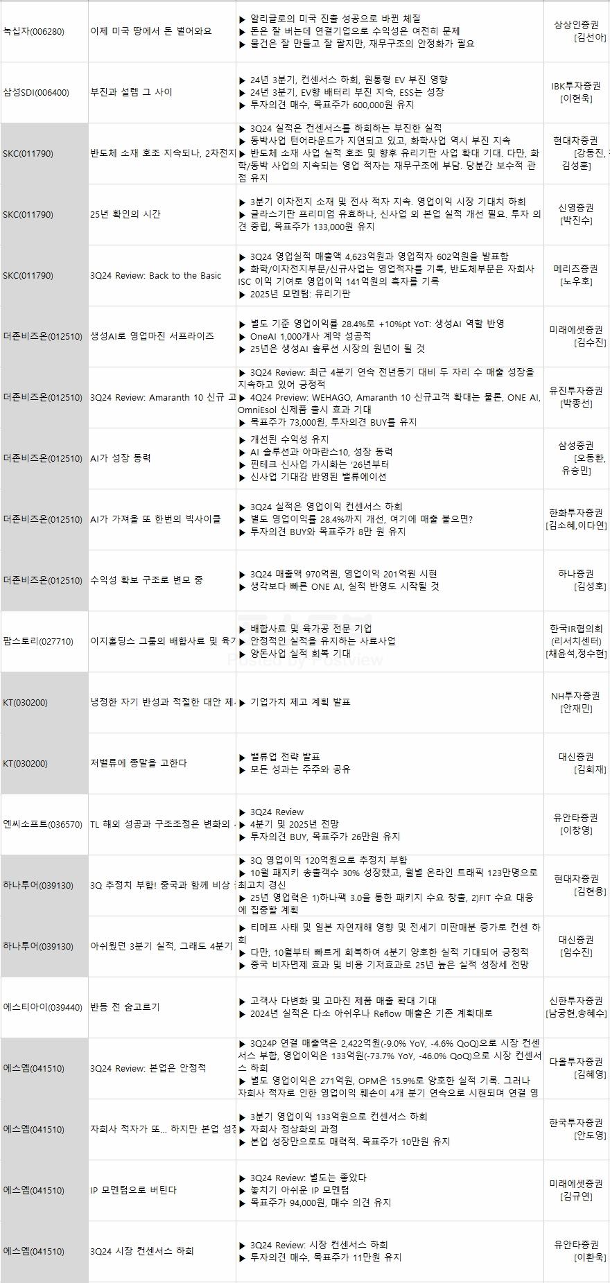 추가로 2024년 11월 6일 증권사 리포트에서 나온 종목들 중에서