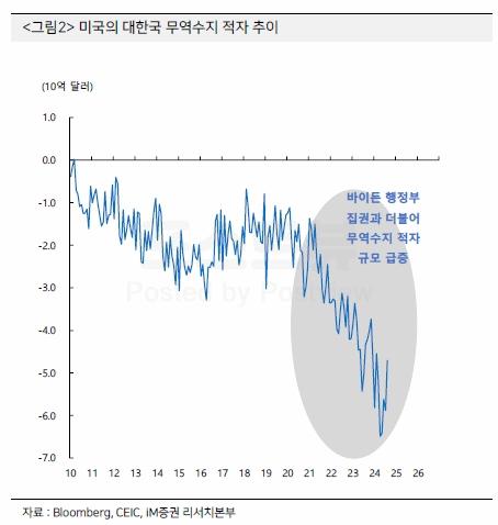 우리나라의 경우에도 미국 수출 의존도가 높아져서 바이든 행정부때 무역수지 적자가 급증했습니다