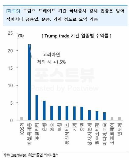트럼프 트레이드에서 유틸리티, 은행, 보험 등의 업종이 강세였던 점은 시사점이 큽니다