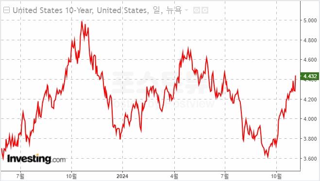 앞서 살펴본 것처럼 트럼프 대통령은 재정확장을 계획하고 있기에 미국채 10년물 금리가 급등중입니다
