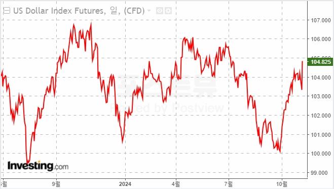 달러인덱스가 트럼프 대통령 당선을 기점으로 다시 한번 급등하고 있습니다