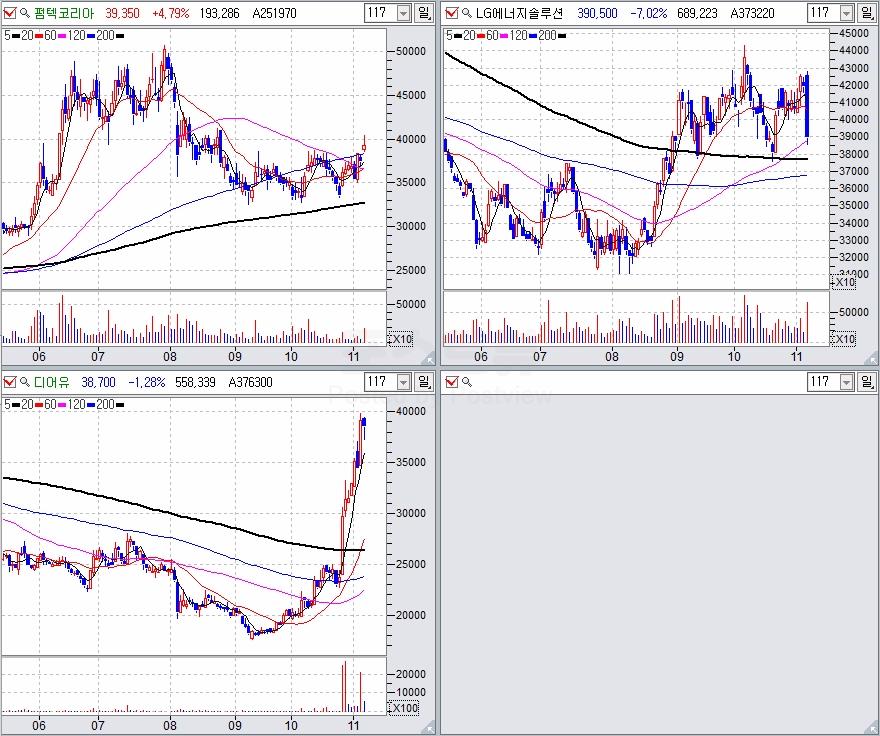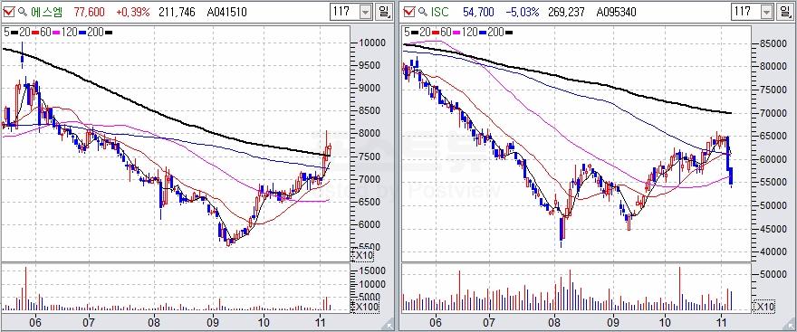 차트 흐름은 10월부터 상승하는 모습인데, 200일 이동평균선을 어떻게 돌파할지 관심가네요