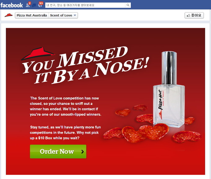 피자헛 향수를 선물하는 호주 피자헛의 페이스북 페이지로 방문해보겠습니다.